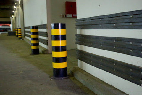 Durable rubber corner guards offering edge protection in parking areas, warehouses, and industrial spaces.
